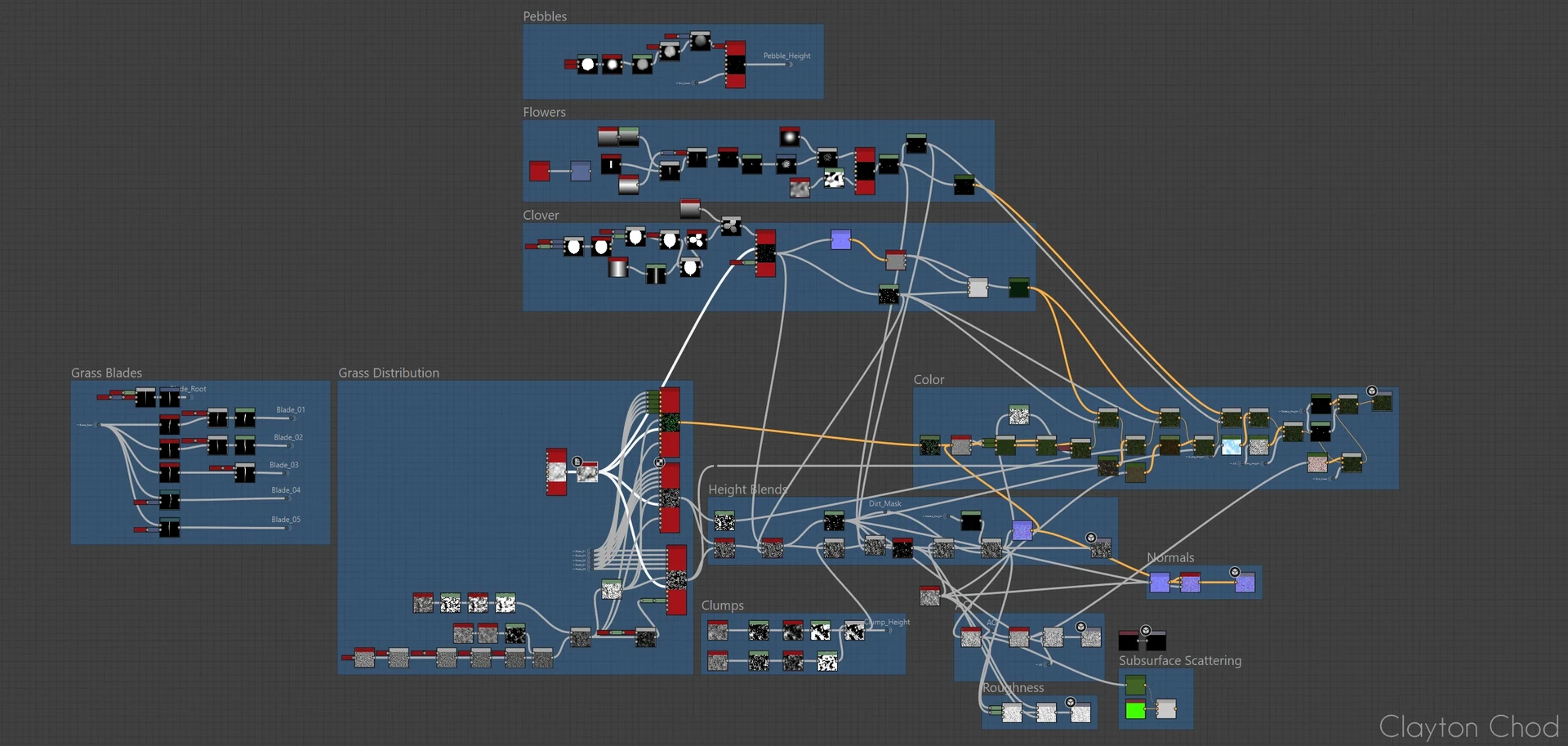 A procedural grass material I made in Substance Designer. I learned a lot about the pattern distribution method for the grass by studying Rebecca El Cheikh's amazing grass material which is available for purchase here: https://artstn.co/m/9pM2R